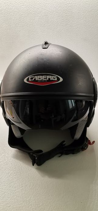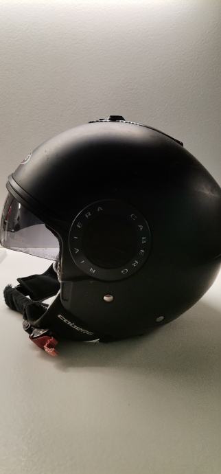 Polovna kaciga sa tragovima korištenja bez prozirnog zaštitnog vizira ali sa vizirom protiv sunca