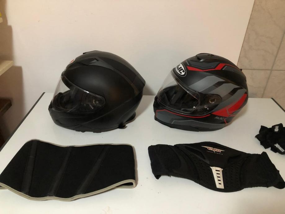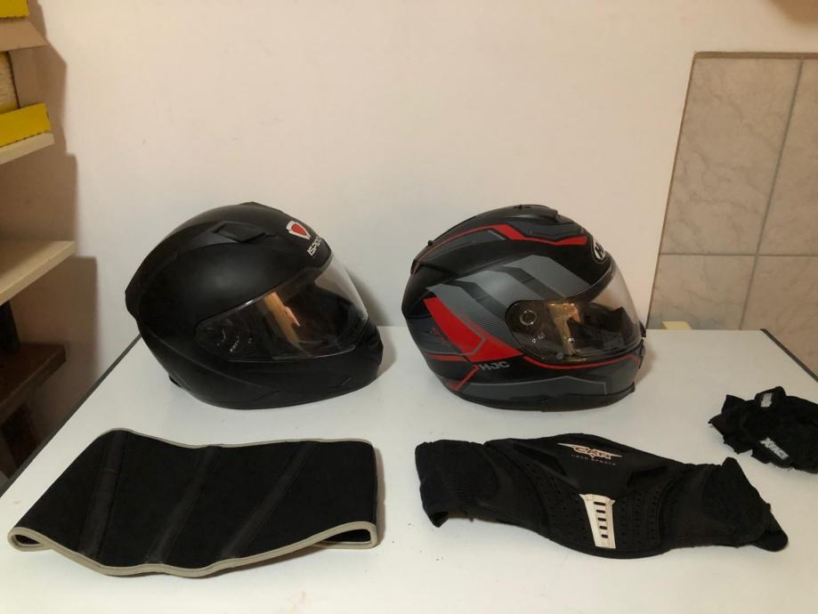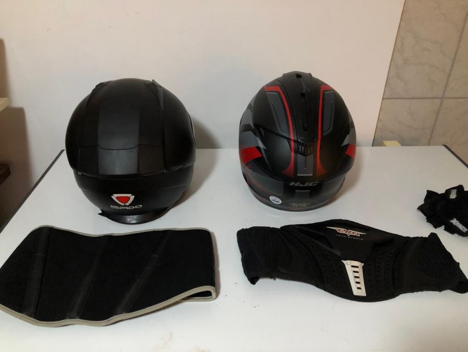 Prodajem kacige Ispido xl,ventilacija za bradu i čelo,brza kopča 80e.HJC M vel.,široki vizir za bolje vidno polje,snažna ventilacija,250 e.Pojas za leđa 15eura.