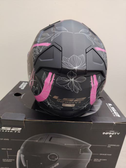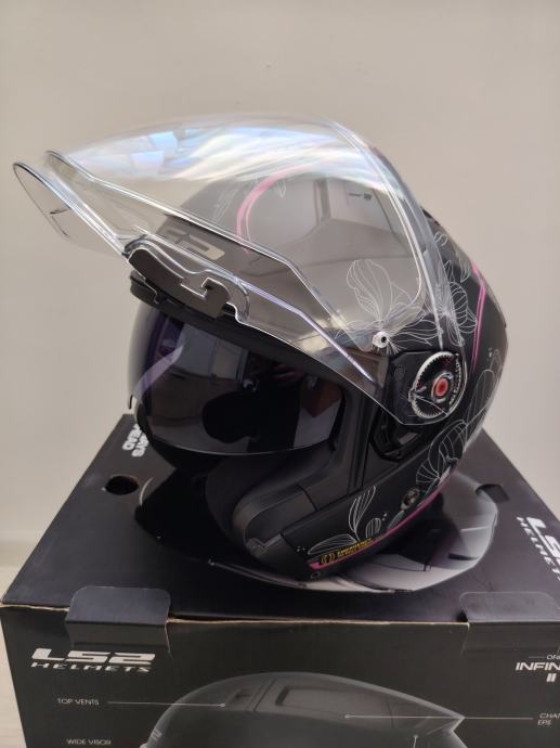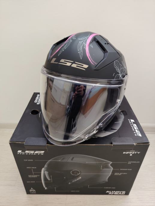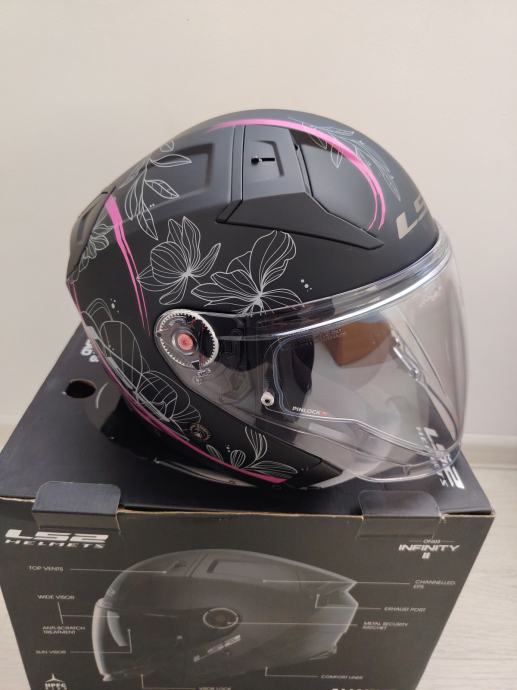 Kaciga LS2 Jet OF603 INFINITY II LOTUS crno roza, nošena par puta. Plaćena 220 €. Veličina S.