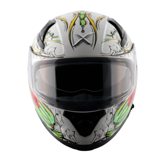 Kako bi se zaštitio motociklist, dvostruka EPS podstava kacige je dizajnirana da savršeno pristaje na glavu kako bi upijale energije udarca i izbjegla penetracija. Remen za bradu pričvršćuje kacigu i glavu unutra kako bi se spriječilo rotiranje ili ispadanje kacige
