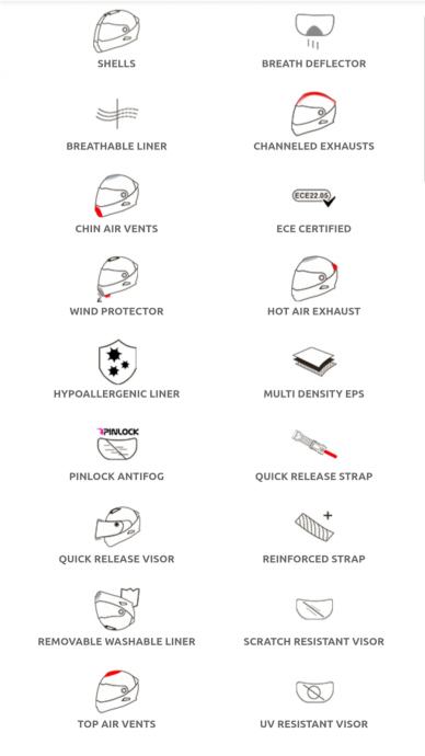 Izuzetno širok, brzo otpuštajući zamjenjivi vizir otporan na UV zračenje daje vozaču izvrstan pogled na cestu. Učinkoviti sustav ventilacije s naprednim kanaliziranim usisnicima zraka na štitniku za bradu i na vrhu kacige s ispusima zraka na stražnjoj strani, pruža maksimalnu udobnost čak i na dugim putovanjima i u svim vremenskim uvjetima.