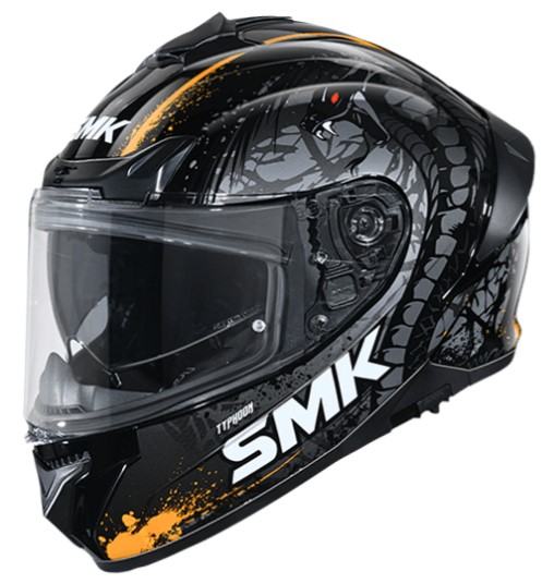 SMK Typhoon je motociklistička kaciga koja pokriva cijelo lice za sve ljubitelje motosporta s kompaktnim i aerodinamičnim dizajnom školjke. Poboljšan nevjerojatnom grafikom ili samo običnim bojama, nudi čisti užitak vožnje.