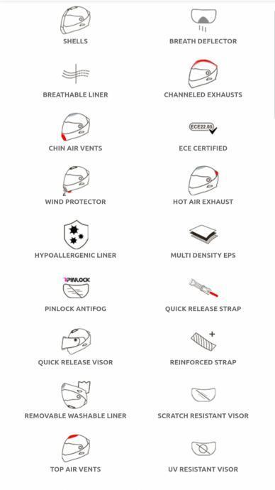 Ekstra široki vizir otporan na UV zračenje daje vozaču izvrstan pregled ceste. Dinamički ventilacijski sustav s višestrukim usisima zraka i ventilacijskim otvorima na štitniku za bradu i vrhu kacige pruža maksimalnu udobnost vozaču, čak i na dugim putovanjima i u svim vremenskim uvjetima.