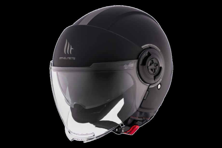 Jet kaciga s dva vizira (prozirni i tamni sunčani na uvlačenjei)s prednjim šiltom.