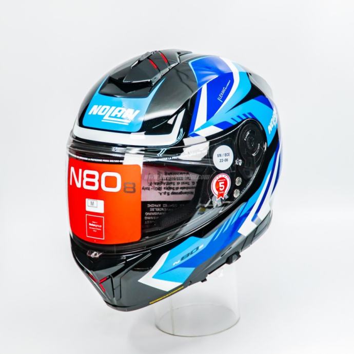 NOLAN N80.8 RUMBLE N-COM - Nasljednica iznimno popularnog modela N87. Odvažan i moderan dizajn naglašava svaki detalj, od školjke do usisnika zraka. Zahvaljujući svojim bogatim tehničkim karakteristikama i izdašnoj standardnoj opremi, idealna je kaciga za svaku priliku, od dugih urbanih putovanja do najizazovnijih putovanja, bez obzira na motor koji se koristio i odredište na koje se dolazi.