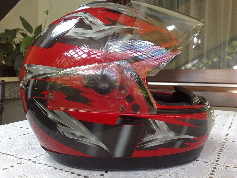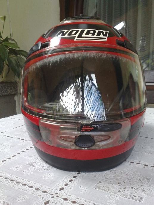 Kaciga je u dobrom stanju i očuvana, vizir ima crtica ,ali ne smeta za vožnju. Ima pinlock unutarnji vizir(antifog) protiv magljenja ,i moram reći da radi savršeno. Isto tako ima i deflektor ispred nosa koji usmjeruje zrak od vizira da spriječava magljenje.