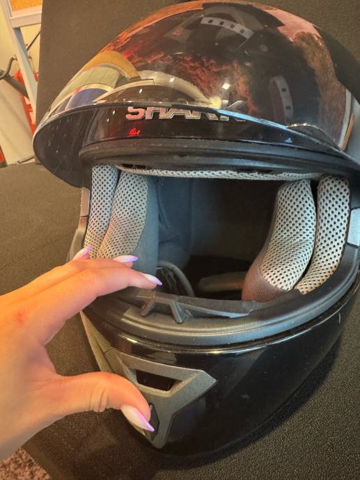 Kaciga je nošena svega 10ak puta, nosila ju je ženska osoba, ima par sitnih povrsinskih ogrebotina