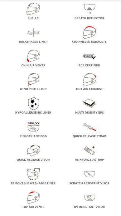 Izuzetno širok, brzo otpuštajući zamjenjivi vizir otporan na UV zračenje daje vozaču izvrstan pogled na cestu. Učinkoviti sustav ventilacije s naprednim kanaliziranim usisnicima zraka na štitniku za bradu i na vrhu kacige s ispusima zraka na stražnjoj strani, pruža maksimalnu udobnost čak i na dugim putovanjima i u svim vremenskim uvjetima.