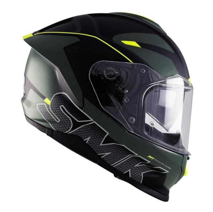 Opremljen je izuzetno širokim Pinlock®70 ugrađenim vanjskim vizirom koji se može zaključati pritiskom na tipku. Također se može pohvaliti unutarnjim štitnikom od sunca koji je jednostavan za korištenje, podstavama od super meke tkanine i vjetrobranima za izvrsnu vožnju.
