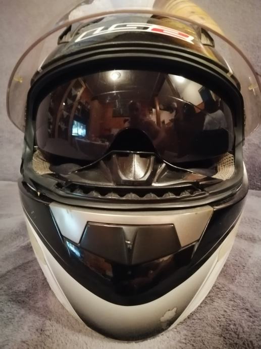 Prodaje se kaciga LS2 L size... višebojna...sa unutarnjim tamnim vizirom...u ispravnom stanju...vidljivi tragovi korištenja...uz kupovinu LS2 kacige nolan kaciga iz oglasa na poklon