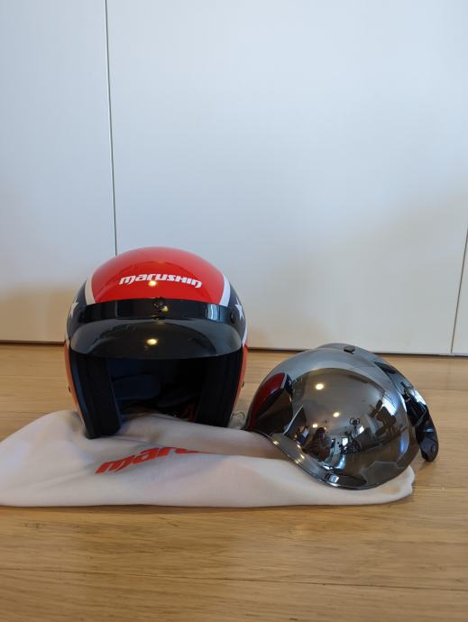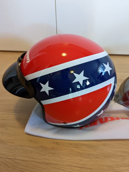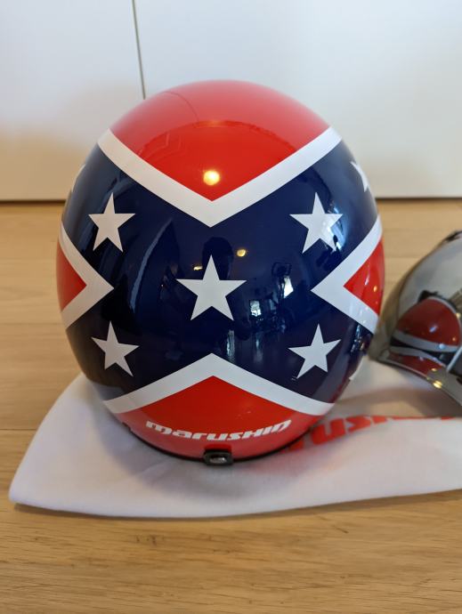 Prodajem Marushin C130 jet (otvorenu) kacigu crvene boje sa južnjačkom zastavom. Kaciga je korištena nekoliko puta.