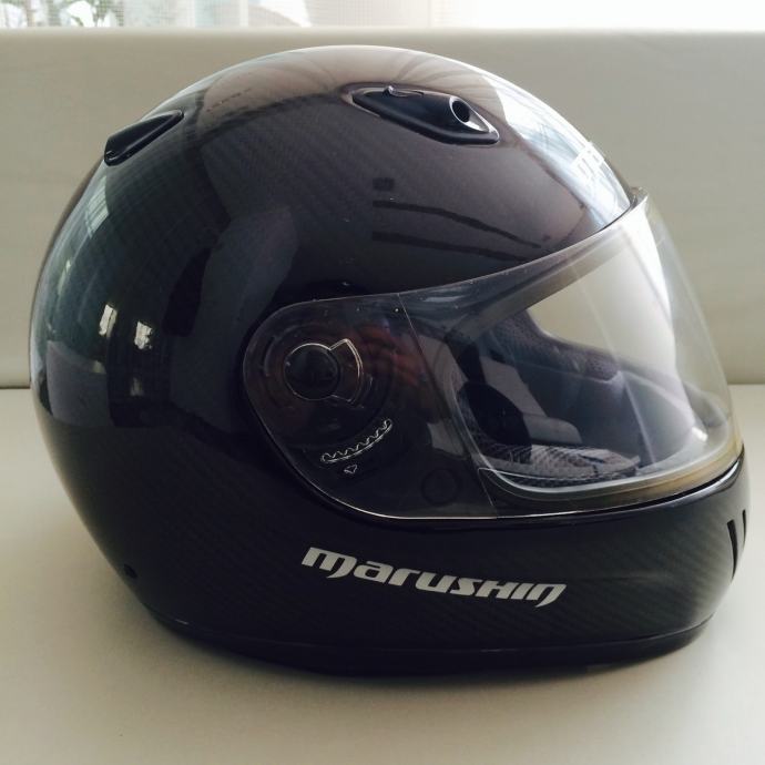 Marushin RS1 Carbon L veličina (59-60cm), korištena, prodajem za 350kn (cijena nove je cca 3.500kn). Kaciga je od karbonskih vlakana, izrazito lagana (samo 1000g) i čvrsta. Racing Double-D kopča. Antiscratch i antifog vizir.