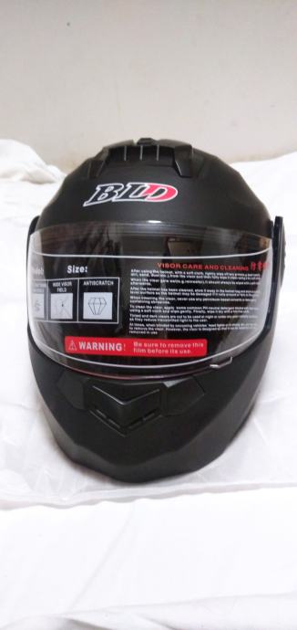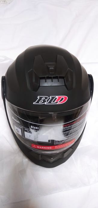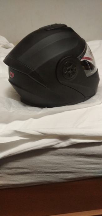 Na prodaju nova kaciga na otvaranje mat crne boje. Ima i unutarnji manji zatamnjeni vizir (naočale) za sunčane dane. Veličina "M" (obujam glave 57-58cm).. ECE i DOT homologacija.