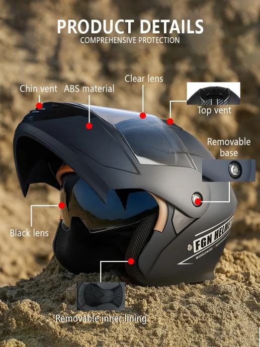 Na prodaju nova kaciga na otvaranje mat crno / siva boje. Ima i unutarnji manji zatamnjeni vizir (naočale) za sunčane dane. Veličina "M - L" (obujam glave 56-61cm). Dolazi s vrećom za spremanje.