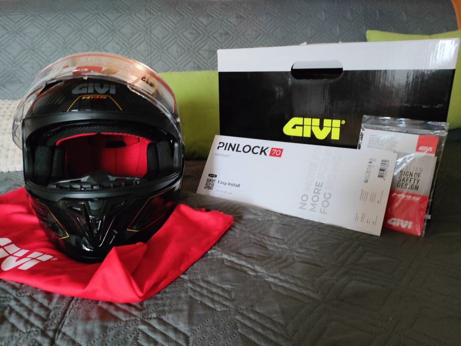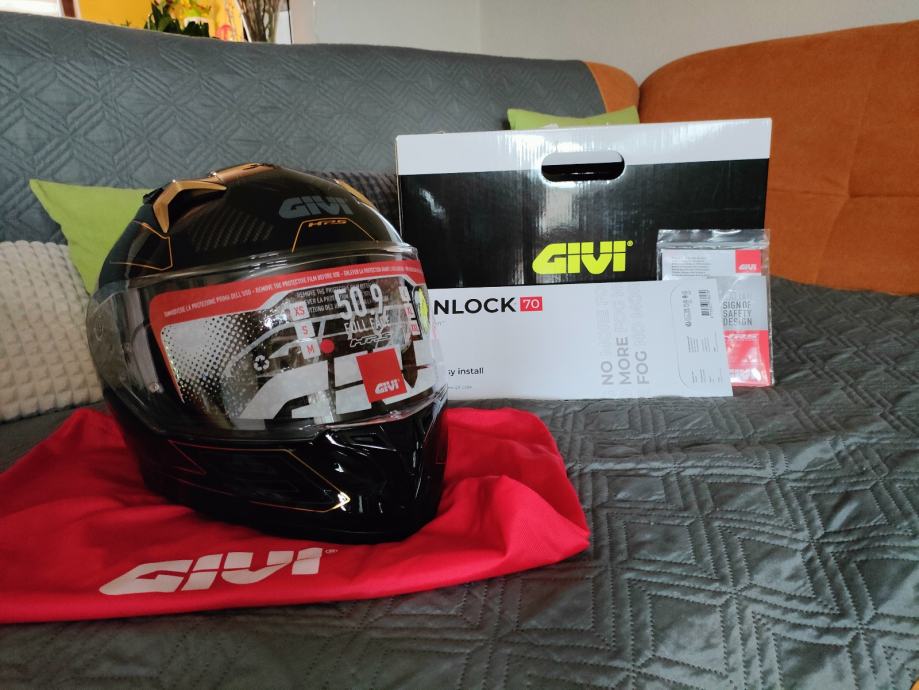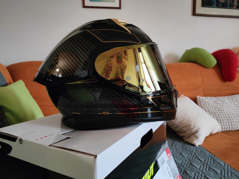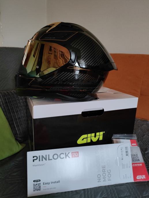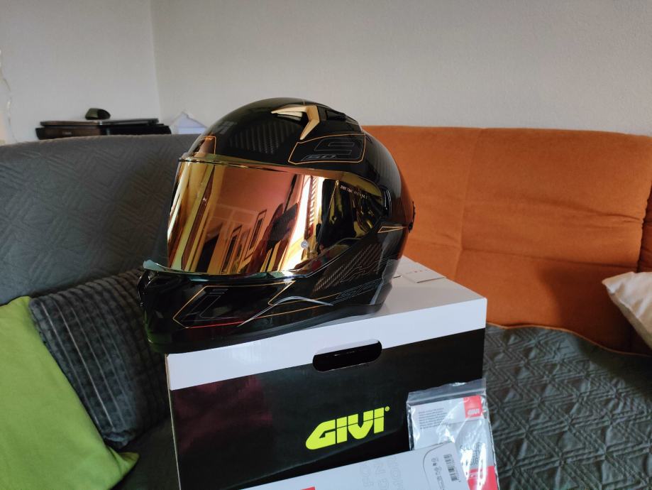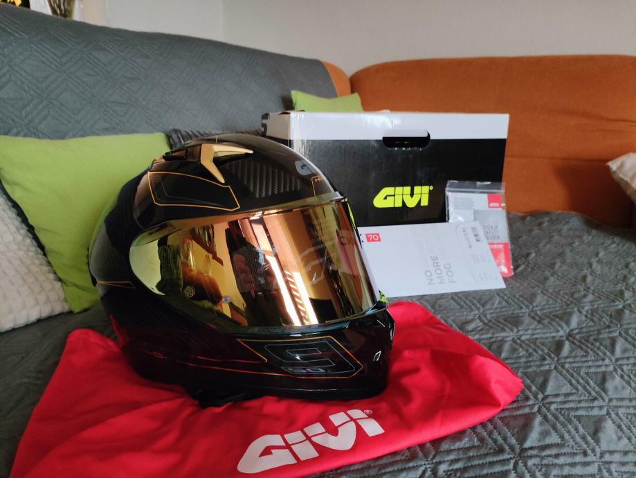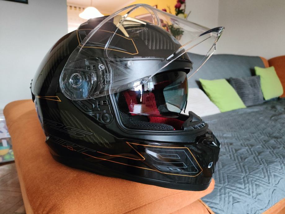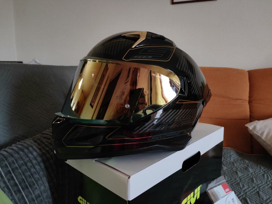 Kaciga dolazi sa dva vizira, jedan standardni (proziran) i drugi zatamnjen (zlatne boje sa efektom zrcala), dodatno ima i ugrađene sunčane naočale.