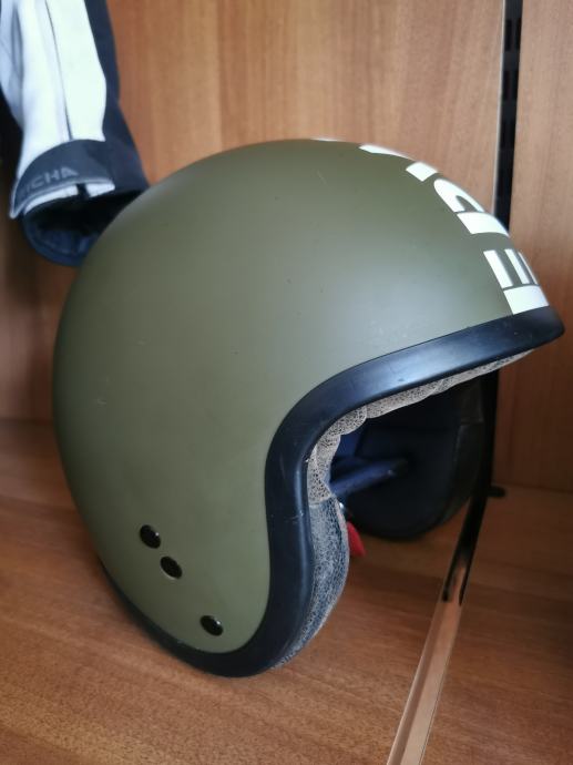 Prodajem praktički novu moto kacigu, maslinasto zelene (vojno zelene) boje. Kaciga je kupljena nedavno i obučena je samo jednom, doslovno na par minuta, te je stoga u izvanrednom stanju, bez ikakvih tragova korištenja.