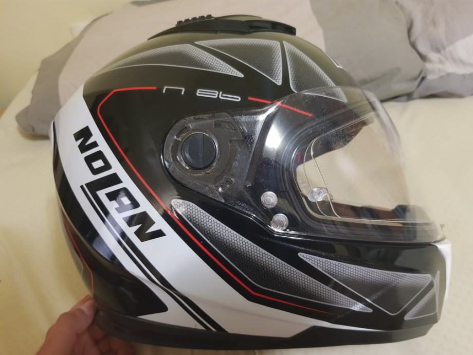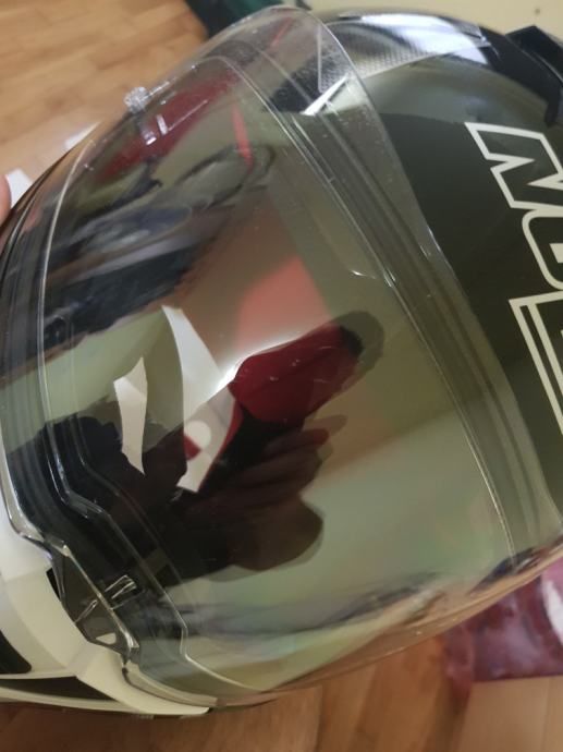 Kaciga ima par crtica na viziru, ali ne utjecu na koristenje. Ostalo novo, novo.
