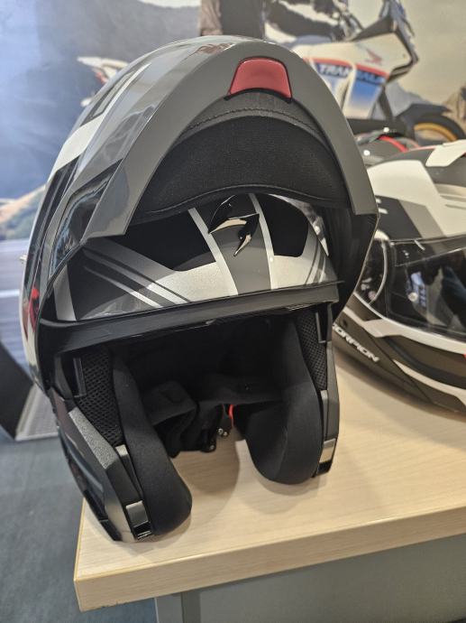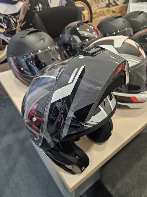 Prodajem više komada Scorpion flip up kaciga (podizna kaciga) sa mogućnosti pomicanja cijelog prednjeg dijela - tada postaje skroz otvorena kaciga. Također ima i ugrađene sunčane naočale u sebi. Razne boje i veličine na raspolaganju! Kacige su kupljene u Honda Split i posjeduju račun, original pakiranje i pin lock protiv magljenja. Stanje doslovno kao novo, korištene su svega par puta, a neke niti jedan put. Detaljnije slike na upit. Cijena po komadu je 170€. Kontakt samo na broj mobitela +385 95 348 2513.