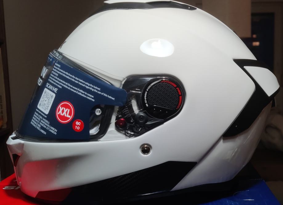 Prodajem novu, nekorištenu kacigu Shark Spartan GT Pro u veličini XXL, ili 63/64 cm opsega glave. Kaciga je od karbona i lakirana bijelo za najbolju vidljivost. Radi se o top modelu franzuskog proizvođača Shark u Sport-touring segmentu. Ima unutarnji sunčani vizir i dolazi s Pinlock insertom. Sve ganc novo, nikada ne korišteno. Nosio dva puta po 45 minuta s potkapom, ali na žalost mi ne odgovara. Imam preširoke jagodice i uši. Tu me nakon 30-40 minuta počinje stiskati.