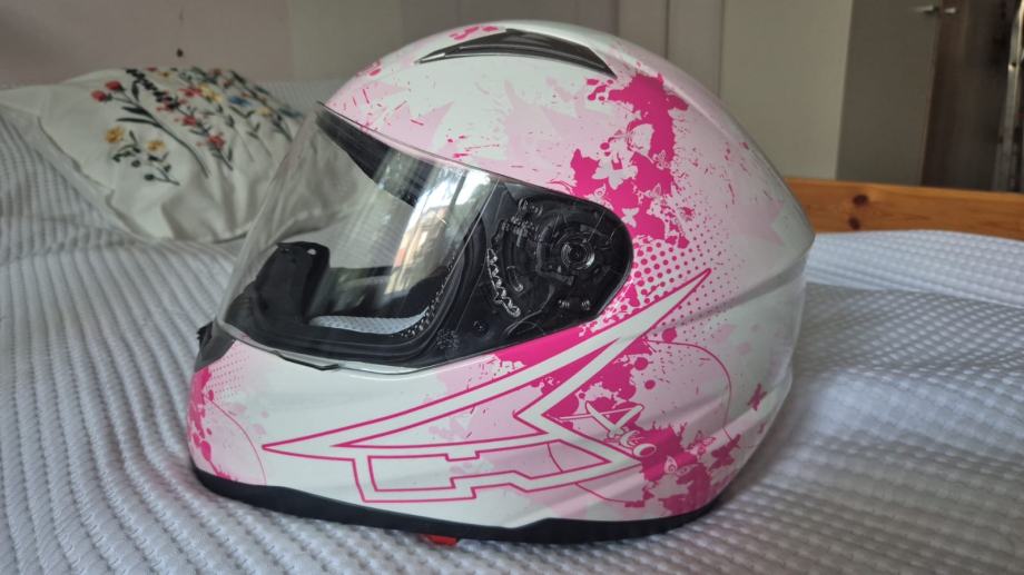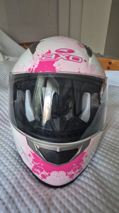 Zenska kaciga marke Axon, nosena svega par puta, neostecena. Velicina je M. Uz kacigu gratis dolazi i pojas za leđa.