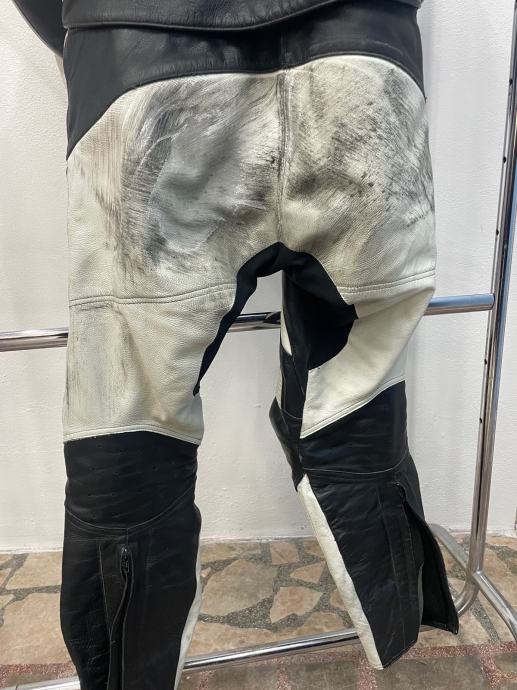 * Odijelo je dvodijelno (jakna top stanje + hlače sa oštećenjima), izrađeno od visokokvalitetne prave kože, s izraženim zaštitama za maksimalnu sigurnost pri vožnji. Idealno za sportske i touring vozače koji žele spoj udobnosti i zaštite.
