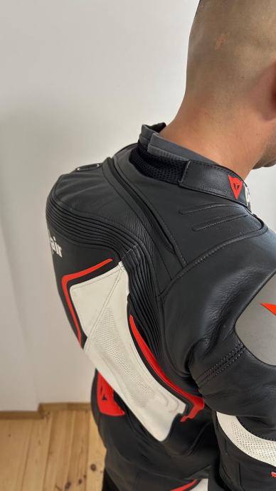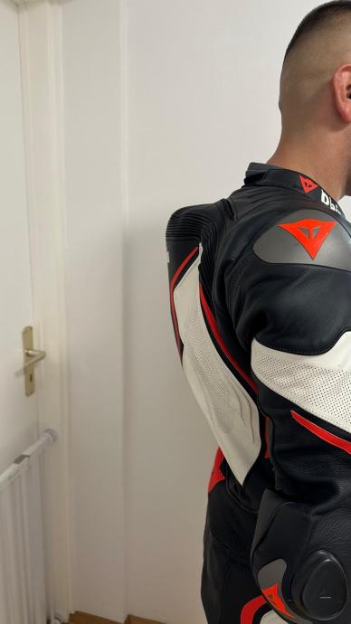 Na prodaju kozni kombinezon, sa ugrađenim zracnim jastukom odjelo je jako malo nošeno, bez padova, na odjelu ima par sitnih ogrebotina, na štitnicima, sve ostalo tiš top, unutrašnjost očiščena, na leđima se nalazi izbocina za zastitu kraljeznice.