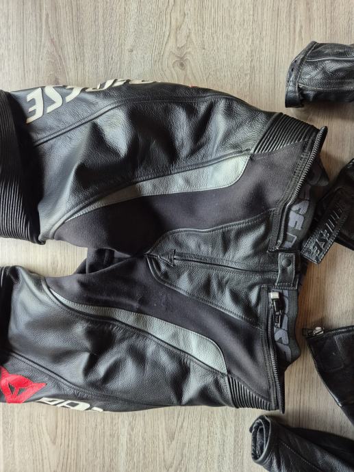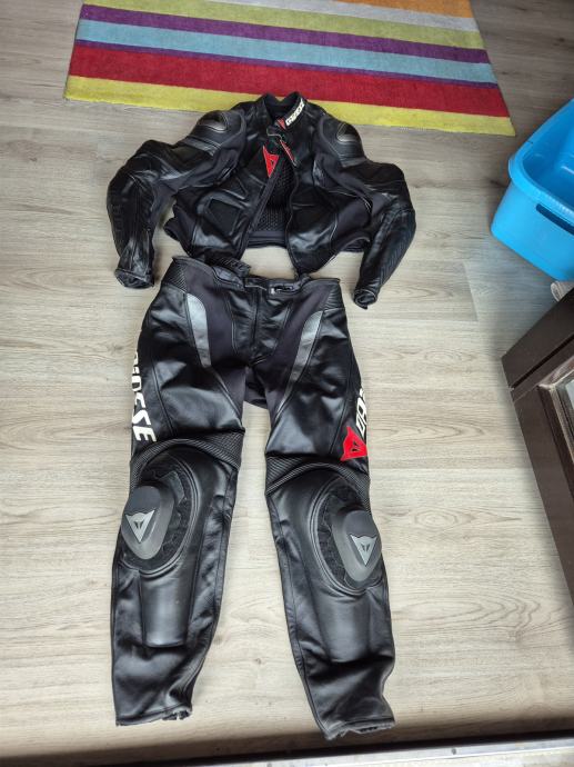 Prodajem dainese dvodijelno kožno odijelo veličine 52. Odijelo ima štitnike za koljena, laktove, ramena i kičmu. Odijelo je korišteno svega 5 puta. Stanje vidljivo na slikama kao novo. Nikad korišteno na stazi.