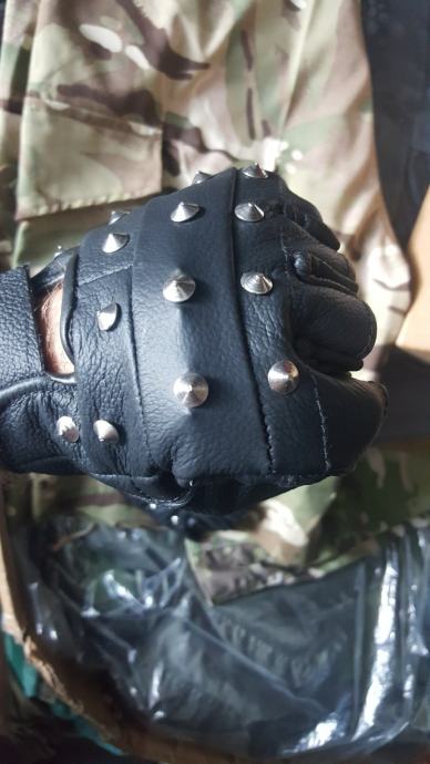 Nove kožne motoristicke rukavice sa zakovicama.. velicine M. i XL. Cijena 20 eura.