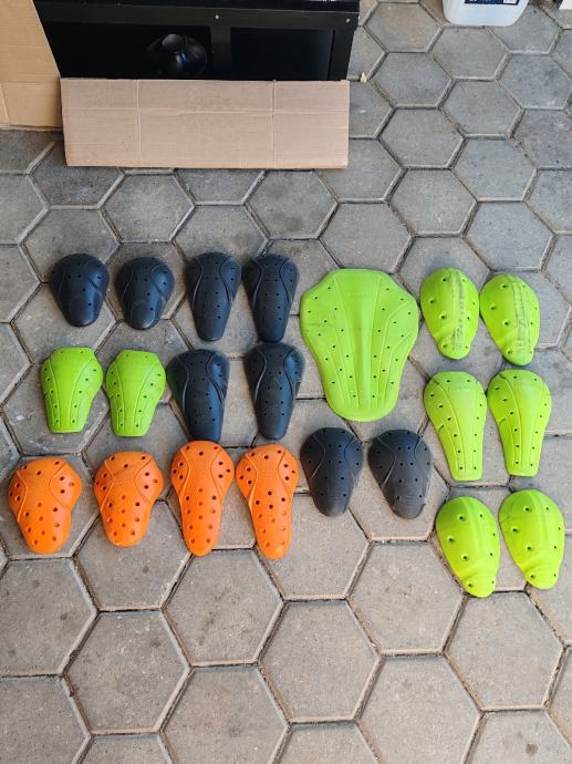 Prodajem nekorištene protektore za motorističke jakne za leđa ramena, laktove i koljena. Cijena 10 eura po komadu i 35 eura za leđni štitnik.