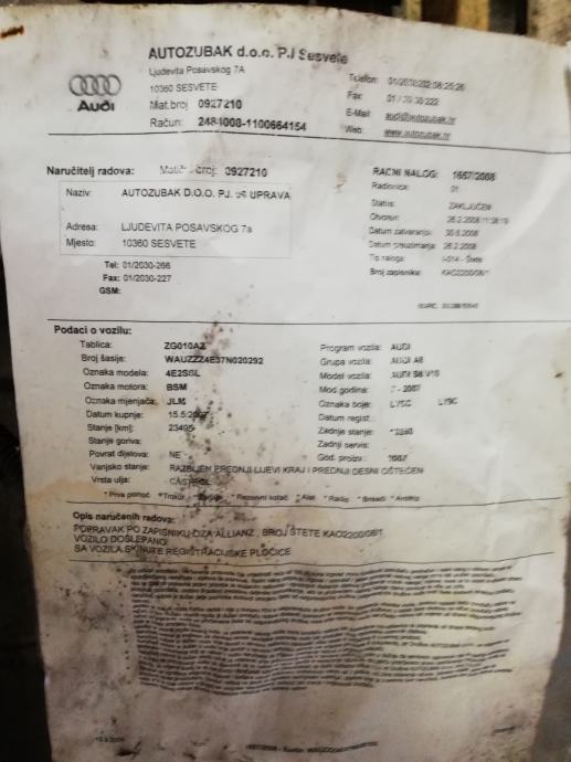 AUDI S8 5.2 V10, 2004-2010 MJENJAČ, U ODLIČNOM STANJU, 100% ISPRAVAN, SA DOKUMENTACIJOM O PORIJEKLU SA BROJEM ŠASIJE I PRIJEĐENOM KILOMETRAŽOM 0992880250