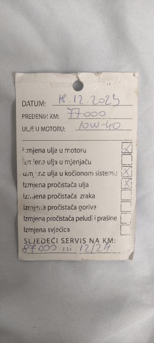 Auto je redovito održavan: motor je ranije radio uredno, mjenjač bez brušenja, kvačilo dobro, ovjes bez nepotrebnih lupkanja, kočnice ispravne. Karoserija nije udarena, bez ozbiljne hrđe.