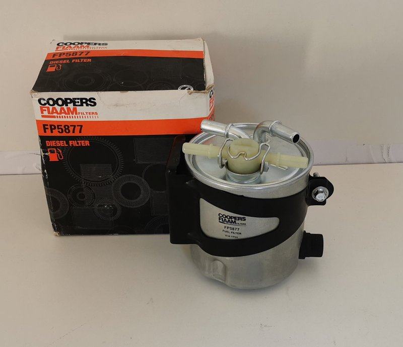 NOVI ORIGINALNI COOPERSFIAAM FP5877 Filter goriva za Renault Megane II i Scenic II vozila pogonjena s 1.5 i 2.0 dCi dizelskim motorima. Coopersfiaam filteri dio su Sogefi grupacije koja je dobavljač originalne opreme filtera za većinu Renault, Peugeot i Citroen vozila pa se samim time njihovi filteri nalaze u prvoj odnosno tvorničkoj ugradnji u navedena vozila - OEM. Filtar na sebi ima priključak za osjetnik za vodu te odgovara samo na vozila opremljena tvornički s takvim filterom.