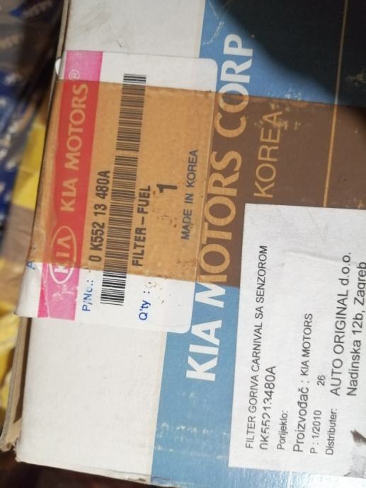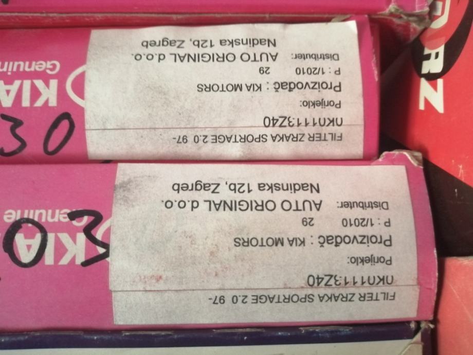 Filter zraka kia 0K01113Z40 za Sportage 2.0 petrol 1994-2003, Retona 2.0 petrol od 1999., filter goriva 0K2A120490A za kia benzince od 2000 god. [carens, shuma, sorento....], filter goriva sa senzorom 0K52A23570 i 0K55213480A za carnival , sportage i sedonu od 99 do 2006, odgovara na vozila Ford focus, mondeo, transit i druga. Filter goriva Kia 0K2A120490A za HYUNDAI H-1 i H100.