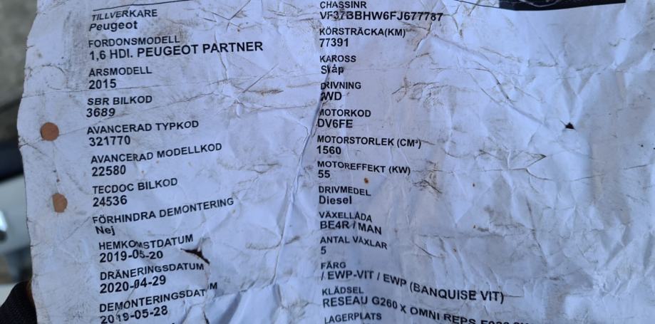 Komplet set kvacilo zamajac Peugeot Partner 1.6 HDI 2008-2017 god korpa lamela 5 brzina