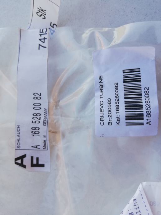 Novo original nekorišteno crijevo turbine za Mercedes A-klasu, A 168 528 00 82 (A1685280082)