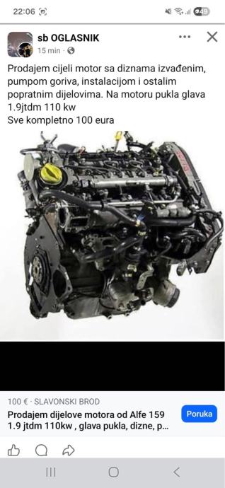 Motor 1.9jtdm , glava pukla, dizne izvađene ispravne, pumpa također
