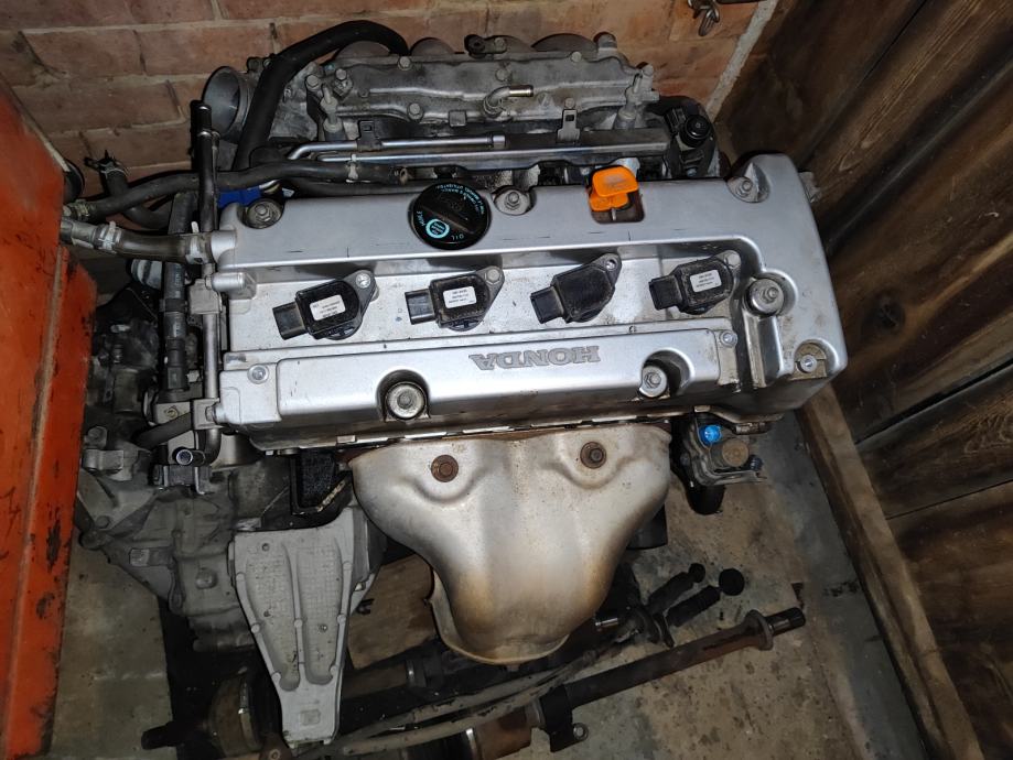 Motor izvađen iz auta Honda Accord TypeS 2006 godišta jer se radila kompletna zamjerna motora iz razloga jer je pustio dihtung glave, kasnije je utvrđeno da treba mjenjati i natezač lanca. Sam motor ima original 380 kkm u kojem je ulje mjenjano svakih 6 kkm dok je getriba u savršenom stanju sa izmjenama ulja u intervalu od 50kkm sa original Honda uljem za getribe. Getriba je sa ručnim mjenjačem. Motor ima novi kuplung koji je prošao 5 kkm.