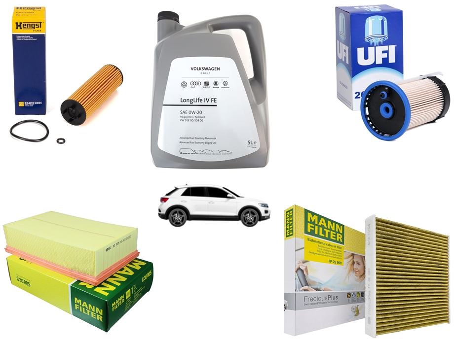 Prodajem novi set/garnituru za mali servis (svi filteri + ulje 0W30) za T Roc 2.0D.