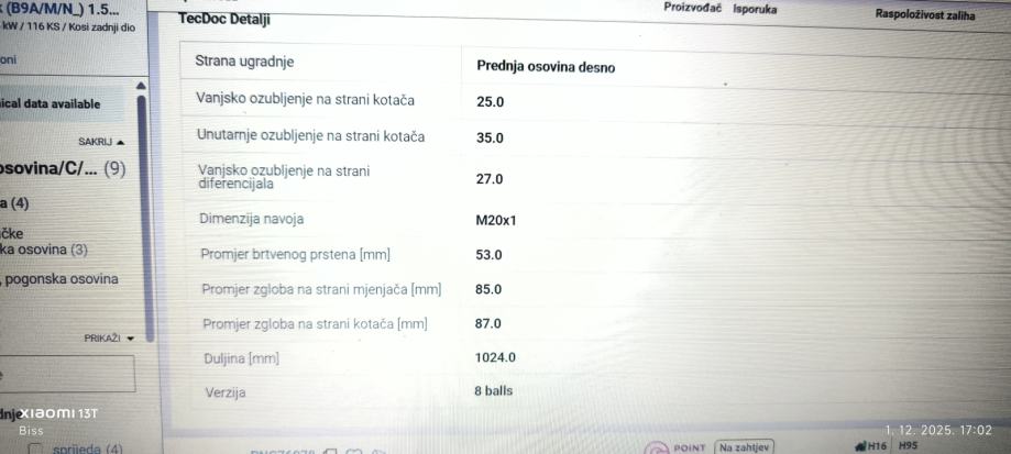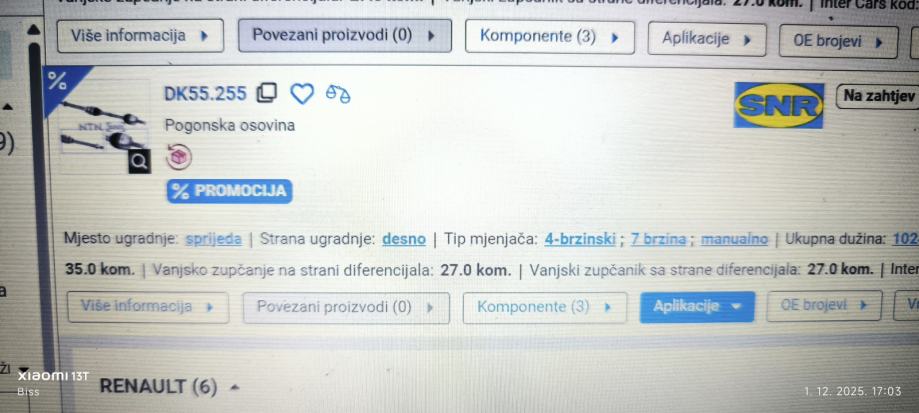 DESNA POLUOSOVINA,KRIVO POSLANA,MENI NE TREBA,NOVA NE KORIŠTENA SNR DK55-255 (PRVA UGRADNJA U RENAULT) ,ODGOVARA ZA SLJEDEĆE MODELE (VIDI SLIKE),CIJENU MOGU NEŠTO KORIGIRATI PRI OSOBNOM PREUZIMANJU,ŠALJEM SAMO NAKON UPLATE NA RAČUN