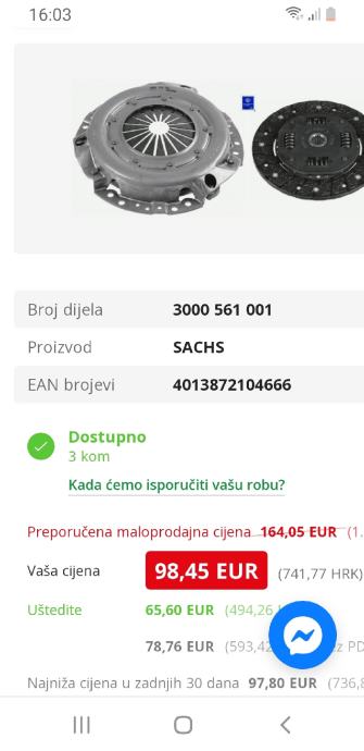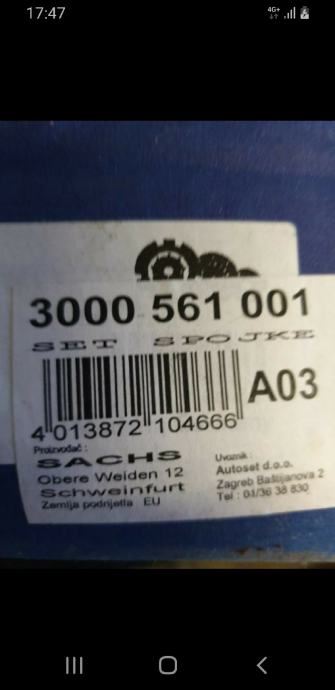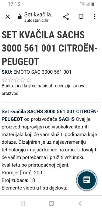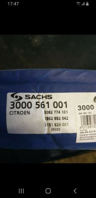 Novo ,set kvačila za Peugeot i Citroen itd..SACHS je jedan od najpoznatijih proizvođača kvačila iznimne kvalitete i dugotrajnosti. KOD 3000 561 001 Šaljem poštom ,Dpd i slično.