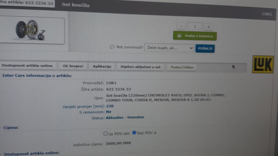 Potpuno novi set kvačila za Opel astra J,corsa D,meriva,meriva B 1.3 D O9,03-
