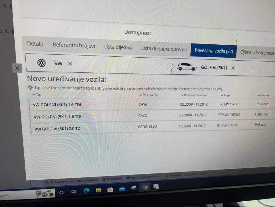 ODGOVARA ZA 1.6TDI I 2.0TDI MOTORE
