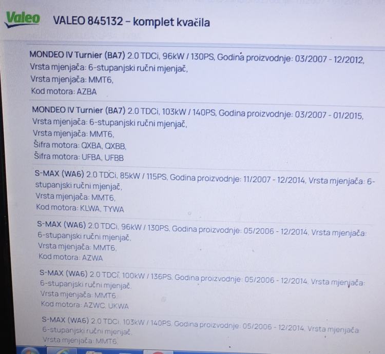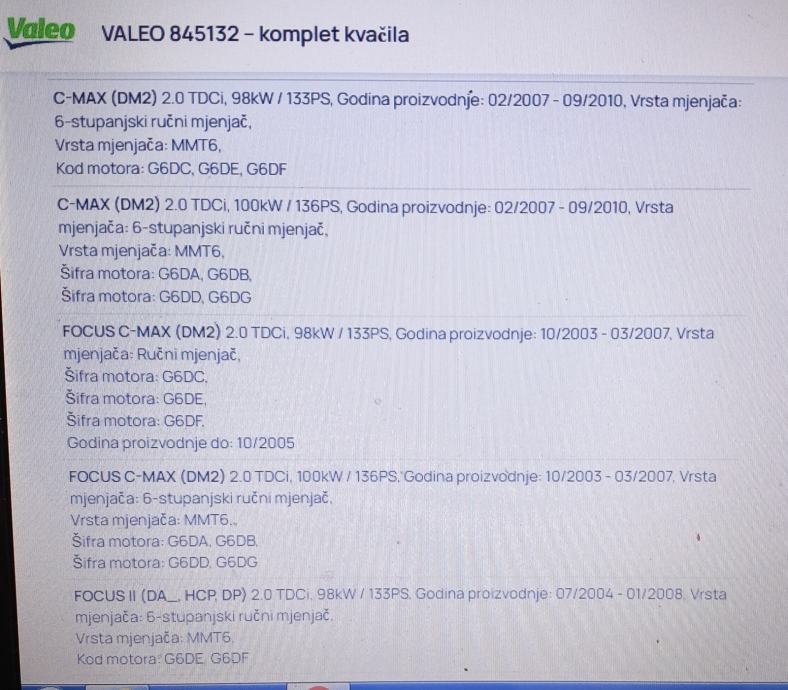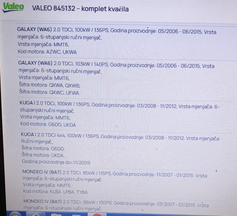 845132 Set kvačila zanašnjak, lamela,korpa,druk lager FORD 2.0 D