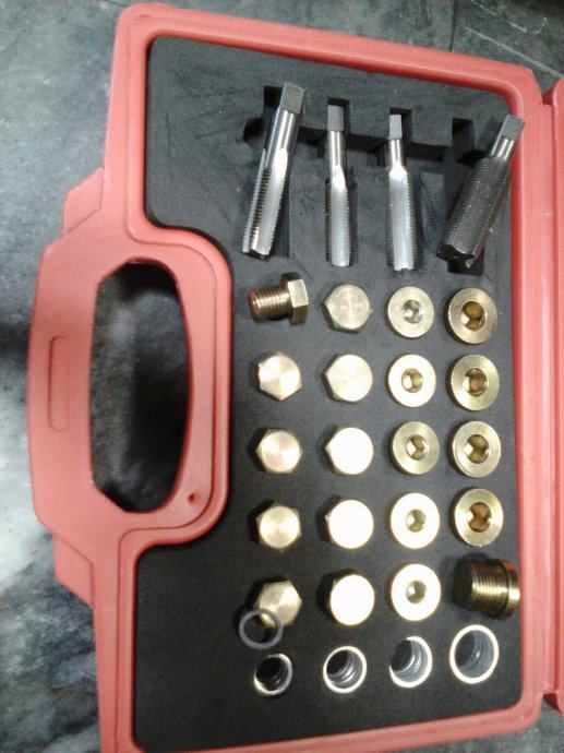 Ureznice i zamjenski čepovi za popravak oštećenog navoja kartera.