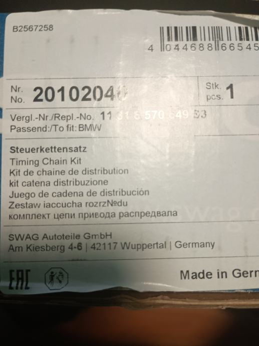 PRODAJEM SWAG SET RAZVODNOG LANCA ZA BMW 3 E90 316D 2010 GOD JE MOJ E SAD ZA KOJE GOD JOS PASE NEZNAM SLIKE SU DOLE PA PO SLIKAMA I OPISU NA KUTIJI MOZDA SI MOZETE POMOCI PO BROJU KOD MAJSTORA ILI U CIAKU TAMO JE KUPLJEN SET CIJENA JE 350 EUR A MORE I NEKI POPUST ZA CEVOSE I PIVU