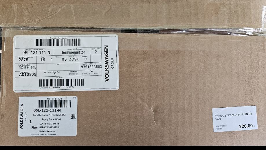 Prodajem original termostat za octaviu IV, narucen zbog krive dijagnoze kvara a nemoguc je povrat originalnog djela. Termostat nije bio izvađen iz kutije niti ugrađen. Moguce da paše i na druge modele VW, Seat, Skoda i Audi (prema kataloskom broju).