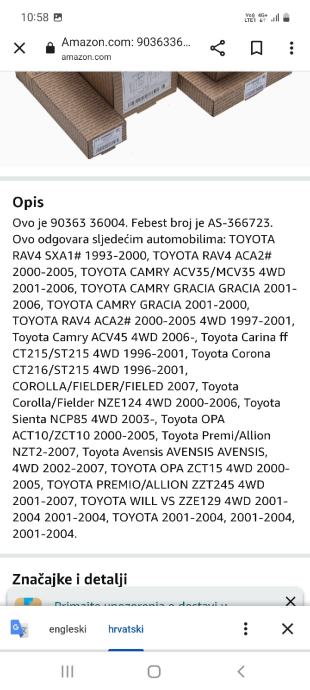 Toyota 9036336004 Kuglični ležaj za prednju pogonsku osovinu