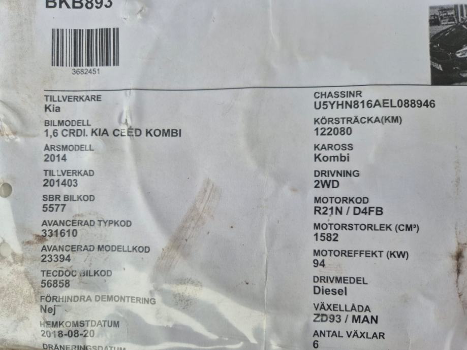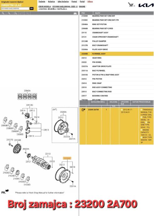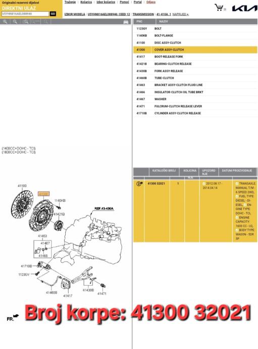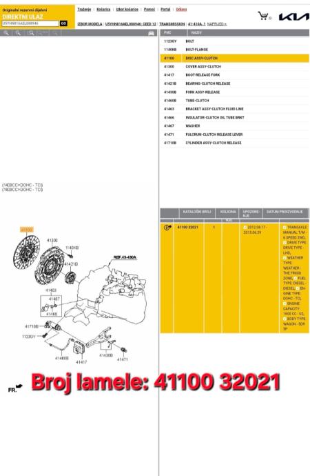 Zamajac korpa lamela set kvačila Kia Ceed Pro Ceed 1.6 CRDI 2012-2018 god