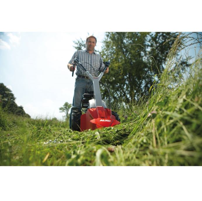 Neograničena košnja u prirodnim vrtovima i na livadi za stočnu hranu, okretno i lako upravljanje. U domaćem prirodnom vrtu, livadi u voćnjaku, na teškom terenu ili padini: AL-KO strižna kosilica BM 875 III vaš je izuzetno snažni, svestrani specijalist za njegu i gospodarenje vašim prirodnim livadama, a može se ekonomično koristiti i za dobivanje trave za stočnu hranu, na ograđenim pašnjacima itd.! Benzinska strižna kosilica impresionira svojim učinkovitim rezultatima košnje u velikom stilu – u dokazanoj AL-KO kvaliteti. Neovisna i ekstremno okretna sve će poslove košnje sa svojom radnom širinom od 87 cm obaviti brzo i učinkovito. Pritom se izuzetno snažni benzinski motor od 2,3 kW (3KS) s pogonom kotača brine za lako napredovanje i pouzdano rezanje čak i u visokom gustišu, gustom divljem raslinju, na terenu i na padinama. Tu ovaj uređaj pokazuje svoju veliku okretnost s kojom će izaći nakraj sa svakim rubom livade i granicom polja. To mu omogućuju kratka izvedba, osobito veliki i široki kotači s profilom prikladnim za terensku vožnju i ergonomski rukohvat s mogućnošću individualnog podešavanja visine i prigušenjem vibracija. Beskompromisna snaga rezanja: strižna kosa od 87 cm ima posebno kaljeni nož kvalitetne marke ESM – made in Germany. To mu jamči dugovječnost i minimalno trošenje čak i u najgušćem gustišu, u trajnoj upotrebi i pri dužem mirovanju. Uz odgovarajuću opremu strižna kosa BM 875 zimi se može brzo i praktično pretvoriti u pomagača za čišćenje snijega: strižnu kosu jednostavno zamijenite daskom za snijeg i po potrebi stavite lance za snijeg – i to je sve! Preporuka: strižne kosilice marke AL-KO spadaju među 3 proizvoda koji su na testiranju strižnih kosilica 2016. u organizaciji savjetodavnog portala http://balkenmaeher-test.de dobili bezrezervne preporuke. Zato je strižna kosilica BM 875 III vaš pouzdani partner u njezi i gospodarenju svim prirodnim vrtovima i livadama, ali i za zimsku upotrebu – a na površinama do 2.000 m² okretna je alternativa traktorskoj kosilici. Snaga kW: 2.3 KW Radna širina, cm: 87 CM Model motora: B&S Series 625EXi Motor ccm: 150 Motor o/min: 3200 Broj cilindara motora: 1 Automatski prigušivač dostupan: DA Dimenzija duljina kartona cm: 80.5 CM Bruto težina u kg: 55 KG Razina zv.snage zag.LwA, dB(A) 99 Vrsta pogona: Benzin Proizvodna linija: Comfort Volumen spremnika goriva, l 0.8 L Pogon 1 brzina unaprijed Za površine do qm 2000m2 Neto težina u kg: 52 KG
