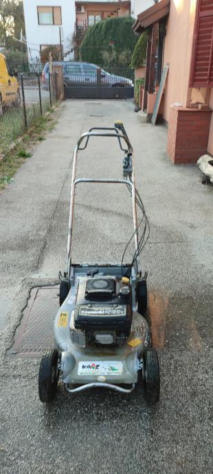 Prodajem Kawasaki samohodnu kosilicu. Radi se o robusnom profesionalnom stroju sa kosištem od 53 cm i snažnim Kawasaki motorom od 180 cc. Kosilica ima kvačilo za pokretanje noža što znači da se kosilicu netreba gasiti da bi stali i primjerice pokupili smeće ispred nje već se samo otpušta kvačilo s čime se zaustavlja nož dok motor ostaje raditi - izrazito korisna profi opcija..
